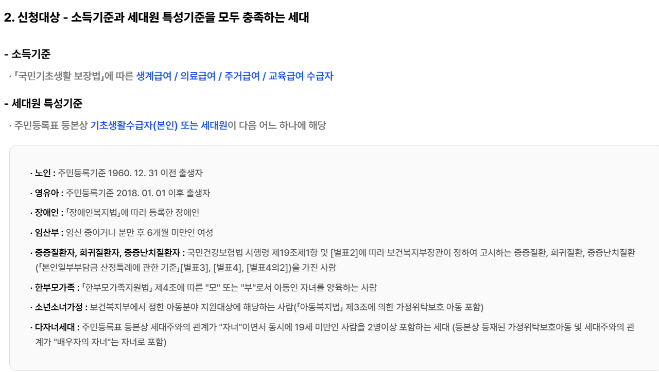 소득 기준뿐 아니라 가구 구성 조건이 함께 적용됐다는 점을 반드시 확인해야 했습니다.