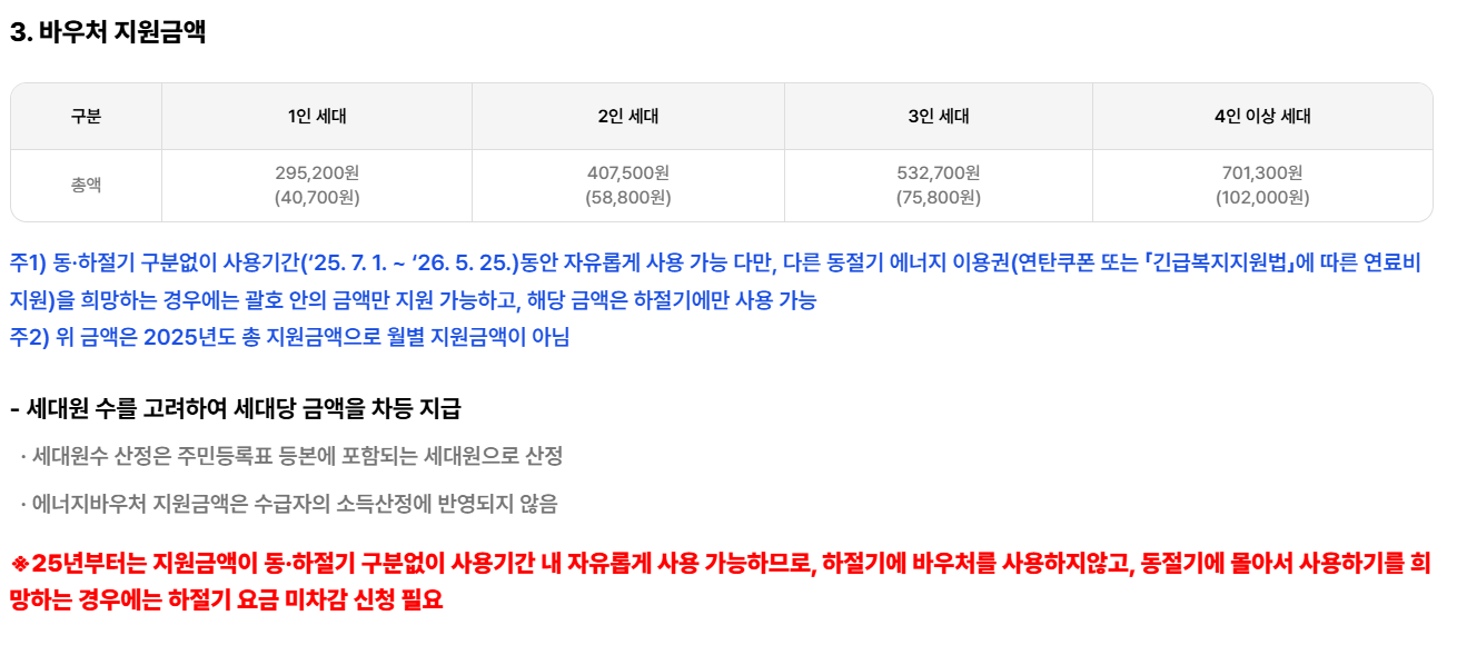 - 에너지 바우처 지원금액은 가구원 수에 따라 다르게 책정됐습니다.