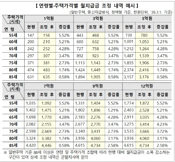 주택연금 수령액은 연령이 높은 사람 기준이 아니라, 연소자 기준으로 계산됐습니다.