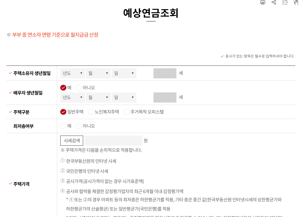 주택연금 수령금액 계산 전 체크리스트