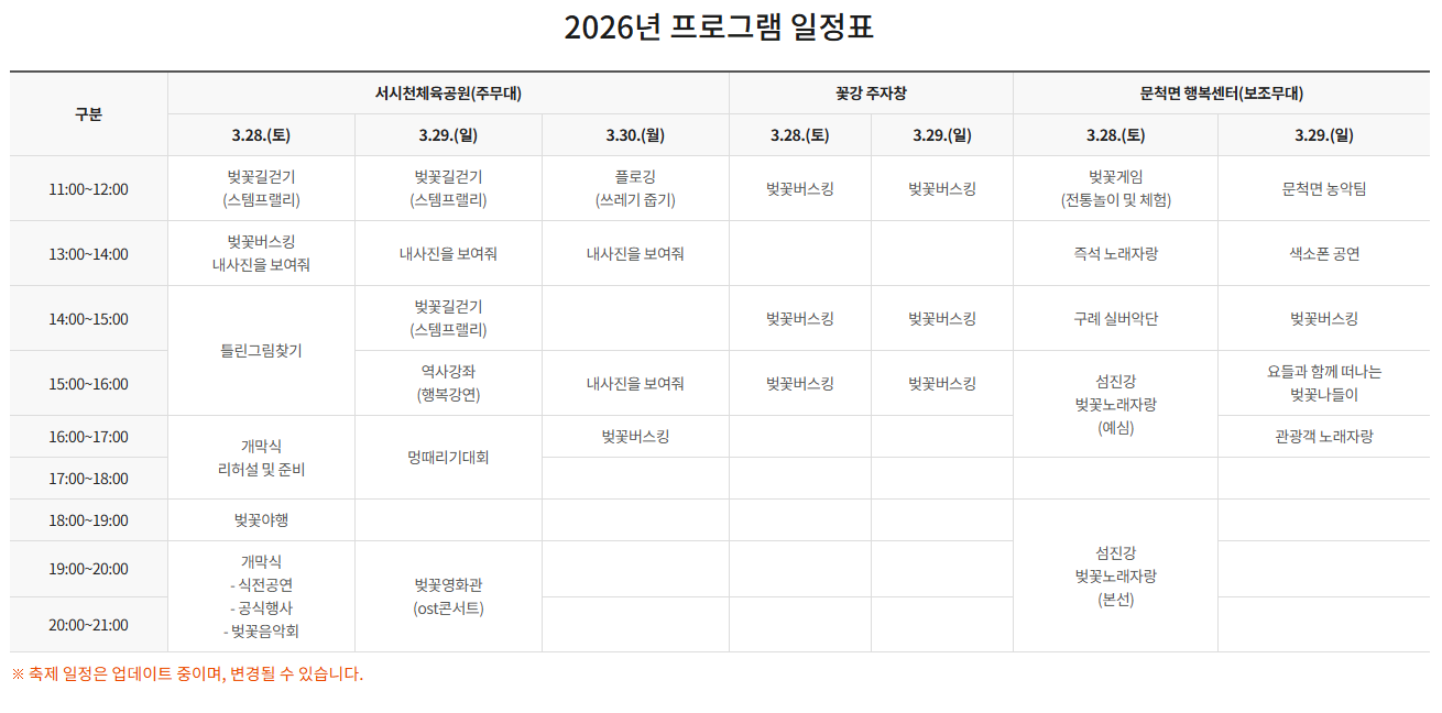 - 개화 시작: 3월 25일 ~ 3월 28일