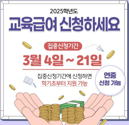 2025년도 초중고 학생 교육급여 및 교육비 지원 신청이 시작됨에 따라