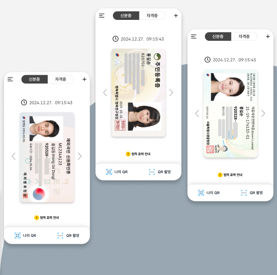 발급 승인 및 등록: 인증이 완료되면 모바일 주민등록증이 스마트폰에 등록되며, 필요한 경우 QR 코드나 바코드를 활용하