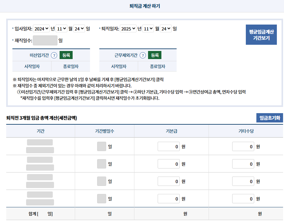 퇴직수당 계산에는 아래 세 가지가 반드시 필요합니다.
