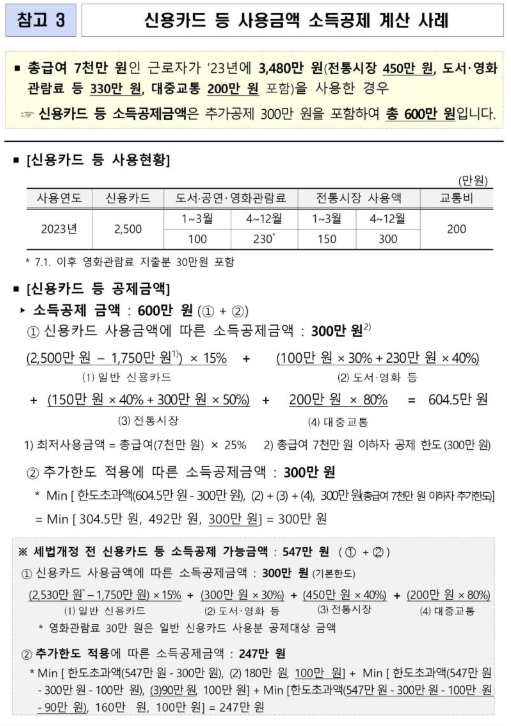 기본 한도 300만원 + 전통시장 100만원 + 대중교통 100만원 = 최대 500만원